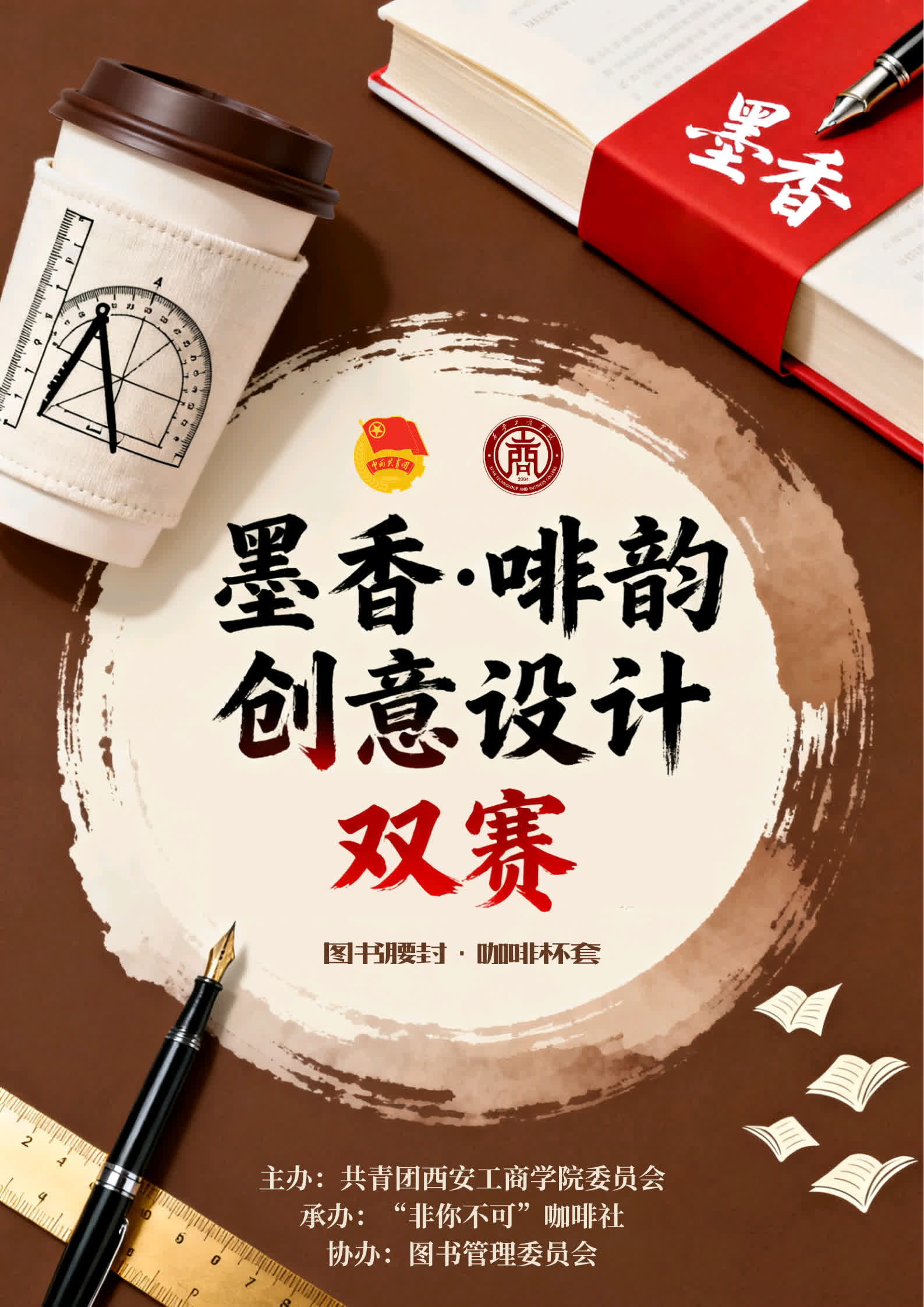 这个秋天,让墨香浸润灵感,让啡韵点燃热爱,用一笔一画勾勒专属创意,让腰封与杯套成为校园里最动人的秋日符号~11月5日-6日,图书馆二楼前厅,我们不见不散!